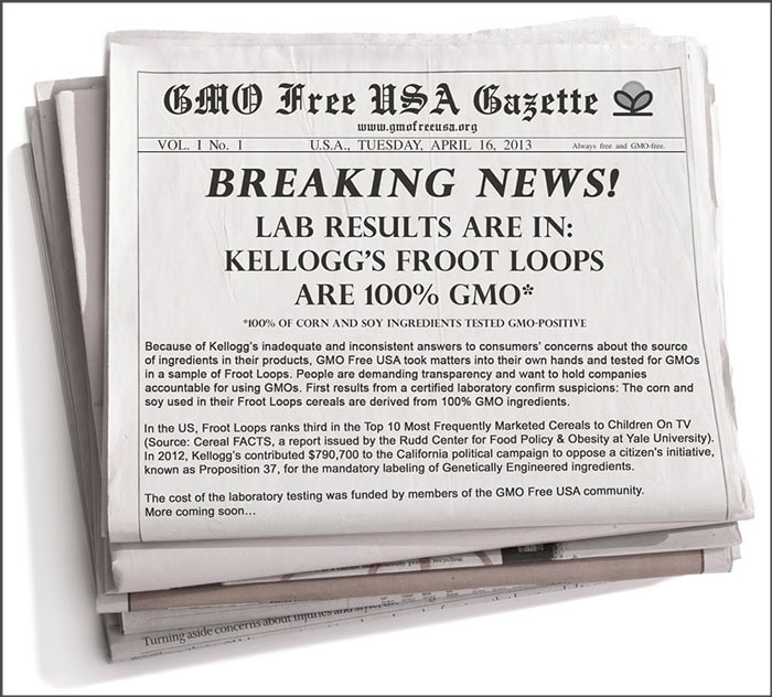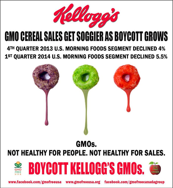 Our first official Facebook page campaign, Boycott Kellogg’s GMOs, launched at the end of January 2013 and went through Earth Day in April. Most people in America didn’t know what a GMO was. Our goal was to grow the FB page from 3,000 followers, where it was at the time, to 10,000, to educate along the way, and to affect Kellogg’s sales in the U.S.